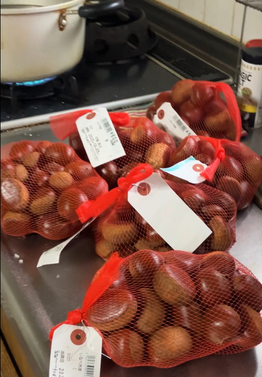 帰りに花を買いに寄ったうりぼうで、わー栗!