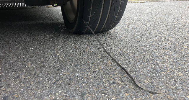タイヤから幅5ミリぐらいの紐状がはがれてきていました。